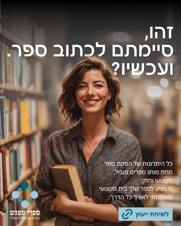 השליחות שלנו היא לעזור לך להעביר את המסר שלך לעולם, להנגיש אותו לציבור ולתת לו כנפיים. אם חוות דעתנו המקצועית תקבע שהספר לא "מבושל" מספיק, נשמח להציע לך אנשי מקצוע מעולים לעזרה. יחד איתם נביא את הספר למקום של איכות בלתי מתפשרת.